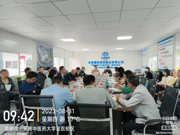 2023年8月31日上午,二期预留项目学生公寓 B栋(景天苑)建设项目第一次工地会议在项目现场会议室召开,建设单位、施工单位、监理单位、勘察单位、设计单位、检测单位、跟踪审计单位相关人员参加会议。